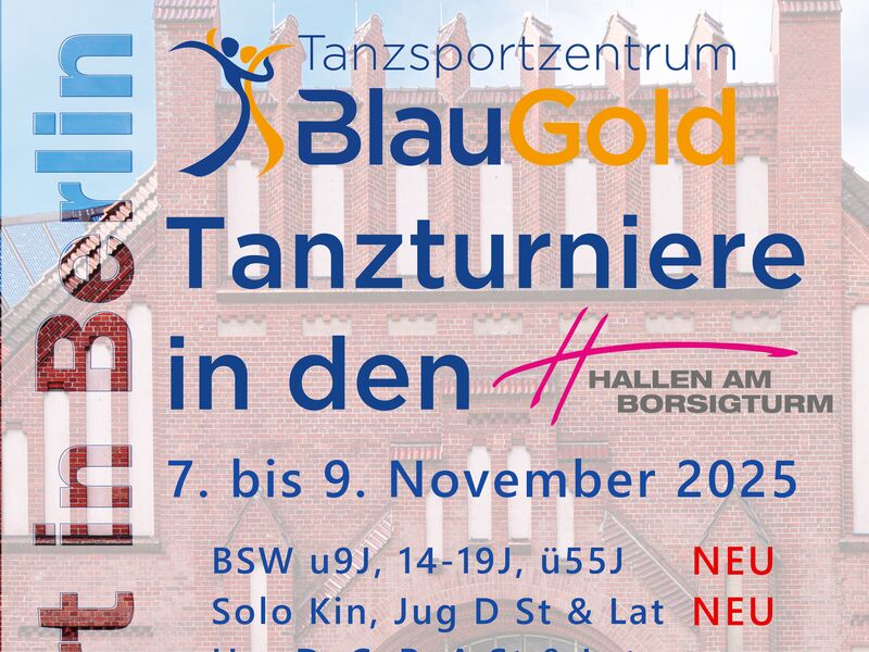Bei den Tanzturnieren in den Hallen am Borsigturm, veranstaltet vom TSZ Blau-Gold, kommt es am 08. November 2025 zu einer historischen Neuerung. Im August 2025 erneuerten der Deutsche Tanzsportverband (DTV) und der Allgemeine Deutsche Tanzlehrerverband (ADTV) ihr Abkommen. Teil dieser Vereinbarung ist die Möglichkeit zur Öffnung von ADTV Tanzschulturnieren und DTV Breitensportwettbewerben für Sportler*innen des jeweils anderen Verbands.