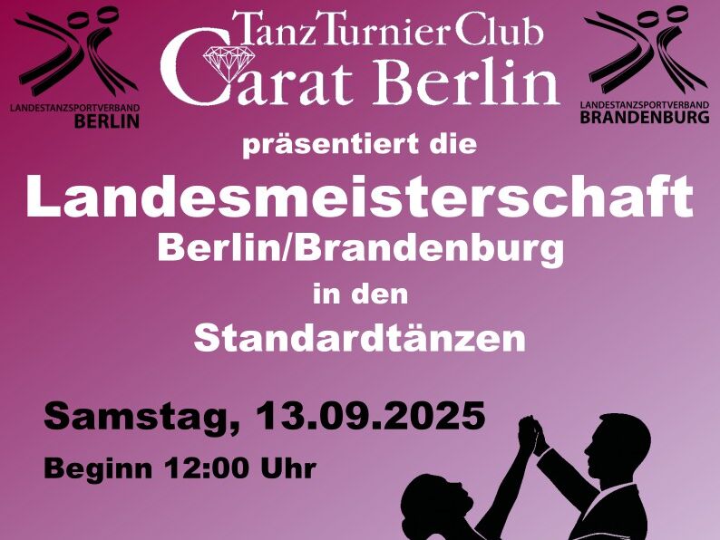 Aufgrund der eingegangenen Meldungen ergeben sich die folgenden Startzeiten für die gemeinsamen Standardandesmeisterschaften Berlin/Brandenburg der D/C Klassen: