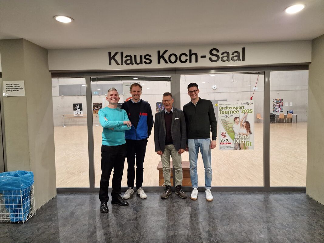 Mit diesem Slogan lud LTV-Archivbeauftragter Dirk Ullmann am 1. Oktober 2025 zum tanzsportgeschichtlichen Rundgang durch die Max-Schmeling-Halle ein, welcher drei Teilnehmer des 12. Symposiums der Deutschen Arbeitsgemeinschaft von Sportmuseen, Sportarchiven und Sportsammlungen e.V. (DAGS) schließlich gefolgt sind. Neben dem Klaus Koch-Saal mit beiden Foto-Ausstellungen, der Geschäftsstelle und dem Verbandsarchiv konnte überdies auch die große Arena besichtigt werden. Anwesend waren Joris Hube (Referent im Landesdenkmalamt), Professor Michael Krüger (DAGS-Vorsitzender) und Konstantin Krüger (Rechtsanwalt). Die dreitägige sporthistorische Tagung fand anlässlich des vor 100 Jahren gegründeten „Museums für Leibesübungen zu Berlin“ beim Landessportbund statt und versammelte namhafte Vertreterinnen wie Vertreter der Sportgeschichte.