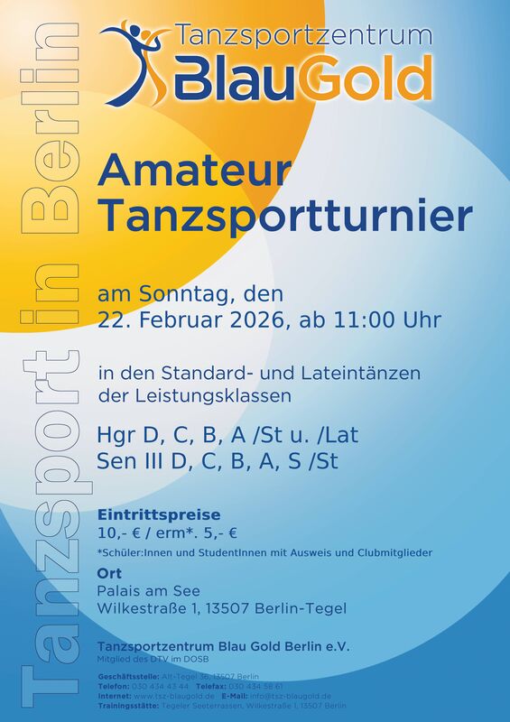 Aufgrund der Startmeldungen ergeben sich die folgenden Startzeiten für das Turnier am 22.02.2026 beim TSZ Blau-Gold Berlin:
