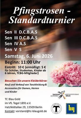 Hauptgruppe C Standard1. Leonhard Rettinghaus / Nina Okroznik, Tanzsportzentrum Blau Gold Berlin3. Florian Gerlach / Anna Kettner, Tanzsportclub Balance BerlinSenioren III B Standard3. Katrin Stade / Katrin Raithel, btc grün gold Berlin