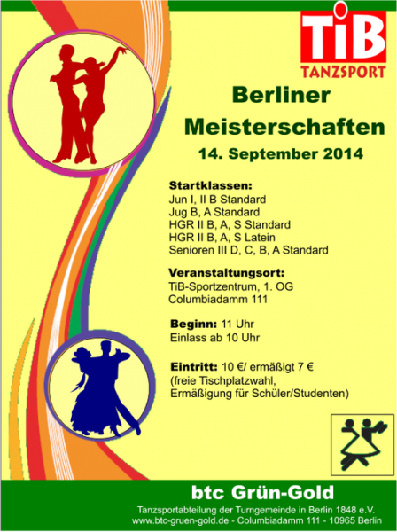 Berliner Meisterschaft in den Standardtänzen Jugend und Senioren III, sowie Hauptgruppe II in Standard und Latein