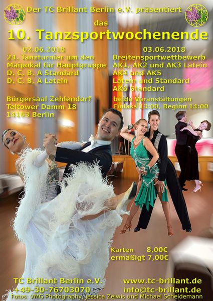 | Meldungen an | Tanzclub Brillant Berlin e.V. Malteserstr. 118-120, 12249 Berlin Tel: 030 76703070 / Fax: 030 76703072 E-Mail: info@tc-brillant.de |