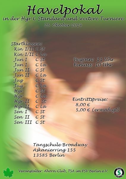 Ort: Tanzschule Broadway, Askanierring 155, 13585 Berlin