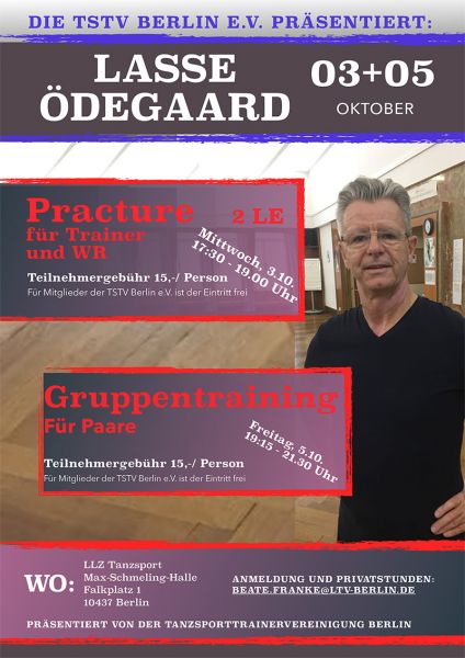 Ort: LLZ Tanzsport, Max-Schmeling-Halle, Falkplatz 1, 10437 Berlin