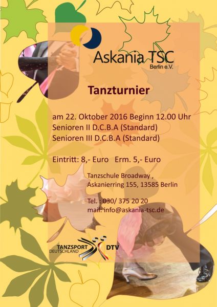 Ort: Tanzschule Broadway, Askanierring 155, 13585 Berlin