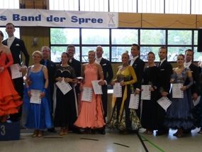 Ein deutsch-russisches Finale feierten die Zuschauer am ersten Abend des Blauen Bands der Spree in Berlin. Das WDSF International Open Standardturnier der Hauptgruppe war mit genau 100 Paaren qualitativ und quantitativ gut besetzt. An einem Sieg der Deutschen Meister und Vizeweltmeister Simone Segatori/Annette Sudol gab es nicht den geringsten Zweifel. Die beiden dominierten das Feld deutlich, spielten ihre ganze Klasse aus und wurden rundum die Tanzfläche von einer Welle des Beifalls begleitet. Auf den zweiten Platz tanzten sich ebenfalls souverän Anton Skuratov/Alena Uehlin. Mit dem dritten Platz ebenfalls für Deutschland war das Treppchen in DTV-Hand: Verdient hatten sich Dumitru Doga/Sarah Ertmer auf den Bronzerang getanzt. Auch Platz vier ging an ein deutsches Paar: Anatoliy Novoselov/Tasja Schulz setzen sich gegen die beiden russischen Finalpaare ebenfalls erfolgreich durch. (Quelle: DTV)
