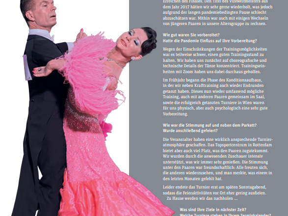 Im Januar 2020 wurde das bis dato letzte Ranglistenturnier der Senioren II Standard in Glinde bei Hamburg ausgetragen. 21 Monate später gingen im Düsseldorfer Boston Club 31 Paare in dieser Klasse endlich wieder an den Start.