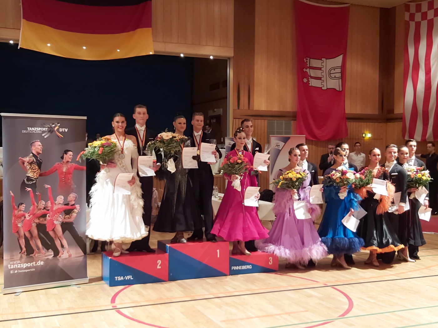 Mit Jan Goerling/Hanna Kalpakidis (Blau-Silber Berlin Tanzsportclub) auf Platz 4 und Arthur Zschäbitz/Antonia Lange (btc Grün-Gold der Turngemeinde in Berlin 1848) auf Platz 6 standen zwei Berliner Paare im Finale.