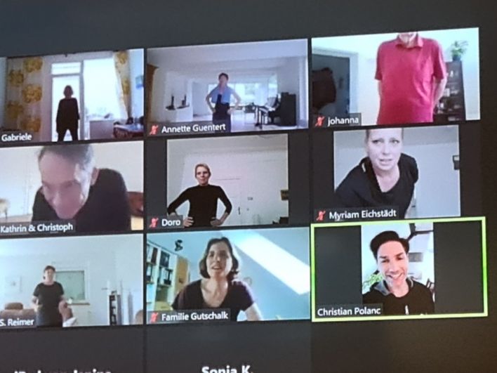 Am Montag abend startete die Online-Workshop-Reihe des Landestanzsportverband Berlin "Lern' doch mal kennen..." mit einer 90minütigen QiGong-Doppeleinheit, die Sebastian Kaliszczyk anleitete. Am Dienstag abend (18. Mai) folgte dann "dancit", eine vom Let's dance-Star Christian Polanc kreierte Tanzfitness für Tänzer*innen. Ilona Beer, die das Angebot koordinierte und durchführte, hatte den TV-Star auf einen kurzen "Besuch" eingeladen und so schaut er am gestrigen Abend digital vorbei (siehe Foto).