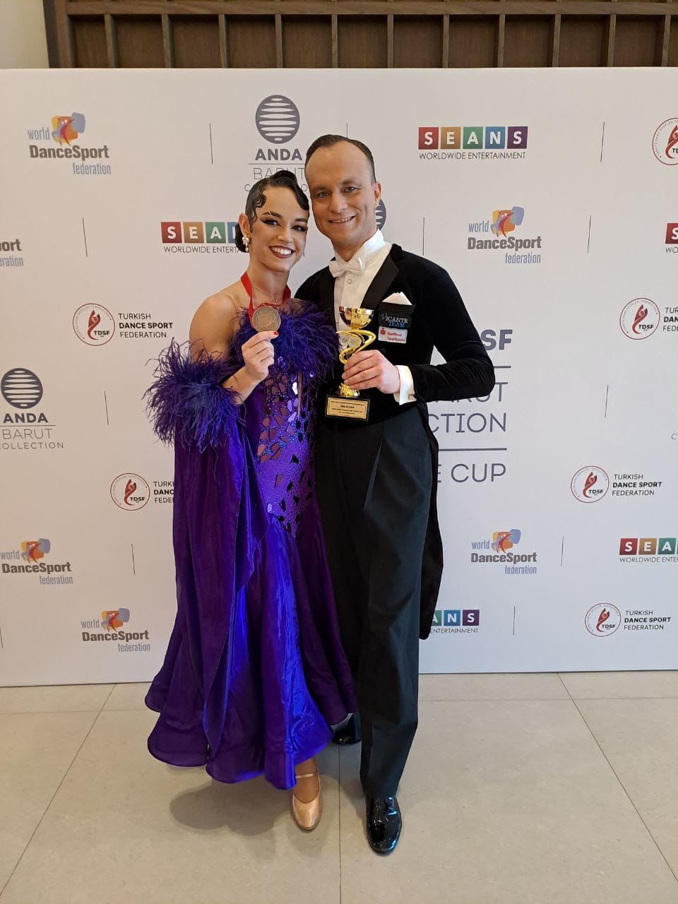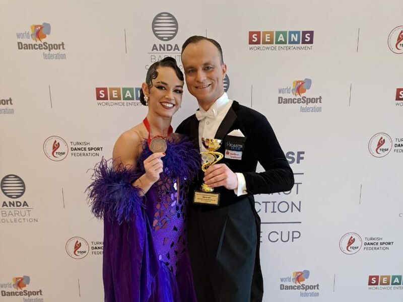 Im türkischen Didim haben Fabian Wendt/Anne Steinmann (TSG Residenz) den EM-Medaillensatz bei den Senioren I in den Standardtänzen vervollständigt. Am Sonntag (23. März) kam die Bronzemedaille der diesjährigen WDSF-Europameisterschaft hinzu. Nur acht Paare fanden den Weg in die Nähe Izmir gelegene Küstenstadt und die Medaillen waren somit schnell vergeben: trotz einiger Bestwertungen lagen die beiden Berliner stets klar auf Bronzekurs und durften, wie bei allen Europa- und Weltmeisterschaften der letzten Jahre, wieder auf das Siegerpodest steigen.