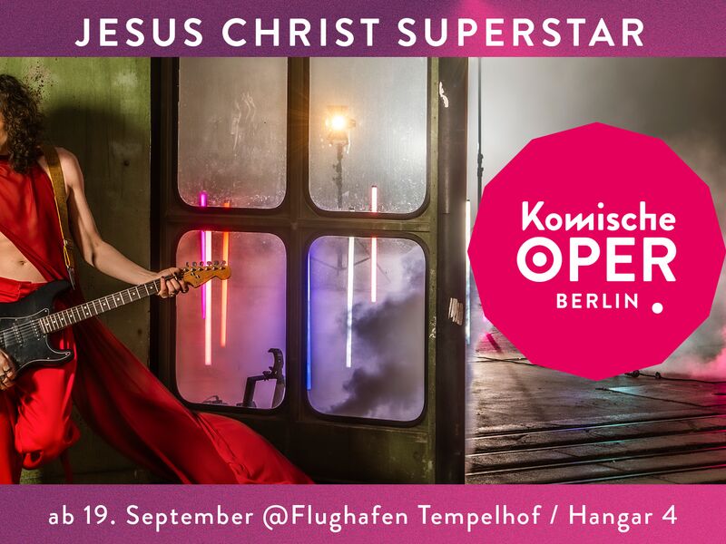 Jetzt ist es auch öffentlich - mit der Vorschau auf die kommende Spielzeit-Saison 2025/2026 hat die Komische Oper Berlin in dieser Woche das Communityprojekt 2025 bekanntgegeben: zwischen dem 19. September und 9. Oktober bringt die Komische Oper Berlin Andrew Lloyd Webbers JESUS CHRIST SUPERSTAR in 15 Vorstellungen auf die extra gestaltete Bühne im Hangar 4 des Flughafen Tempelhof.