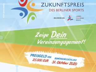 Der Zukunftspreis des Berliner Sports zeigt Jahr für Jahr eindrucksvoll, wie kreativ, zukunftsweisend und wichtig der Vereinssport ist. Vor allem in der aktuellen Situation sind gute Ideen, außergewöhnliche Initiativen und besonderes Engagement gefragt! Der Landessportbund Berlin e.V. (LSB) zeichnet gemeinsam mit der LOTTO-Stiftung Berlin und der Berliner Stadtreinigung (BSR) auch in diesem Jahr wieder die 20 besten Ideen und Aktionen im Berliner Vereinssport aus. Es wird ein Preisgeld in Höhe von 25.000 EUR an Berliner Vereine ausgeschüttet.