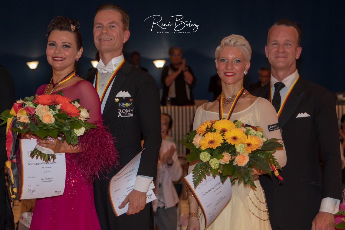 Mit allen gewonnenen Tänzen und einem komfortablen Abstand zum zweiten Platz wurden Gert Faustmann/Alexandra Kley (Blau-Silber TSC) Deutsche Meister 2019. Das in Pinneberg stattfindende Turnier der Senioren II S Standard war bis zum letzten Platz ausverkauft und so sah man den Tänzern die Freude über den Applaus auch an.