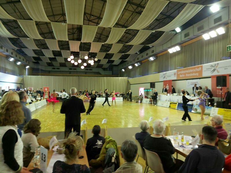 Bei den gemeinsamen Landesmeisterschaften der Landestanzsportverbände Berlin und Brandenburg eröffneten die fünf Junioren I (B)-Paare den Turniertag. Unter den vier Berliner Startern konnten sich Maxim Duda/Mariia Tkachenko (btc Grün-Gold der TiB) über die Goldmedaille freuen. In der bereits zur Mittagszeit bestens gefüllten Messehalle 2 sicherten sich bei den Junioren II (B) dann Anton Waitz/Maria Fedorchenko (Ahorn Club, TSA im PSV) den Berliner Landesmeistertitel - unter den sieben angetretenen Paaren siegten sie in der Berliner Wertung und sicherten sich wie alle teilnehmenden Paare die Fahrkarten zu den Deutschen Nachwuchsmeisterschaften in Stuttgart Anfang März.