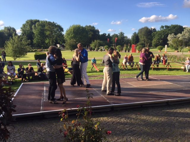 Jeden 1. Mittwoch im Monat wird Tango mit Nicole und Lars auf der Internationalen Garten-Ausstellung (IGA) getanzt. Endlich schien auch mal die Sonne… beim dritten Termin Anfang Juli im Blumentheater. An den ersten zwei Veranstaltungstagen, im Mai und Juni, wurde noch mit Regenschirm getanzt. Aber trotz des manchmal nassen Wetters waren alle drei bisherigen Termine gut besucht. Das Blumentheater der IGA bildet einen wunderschönen Rahmen für Tango im Freien und neben vielen Zuschauern gibt es auch einige Mutige, die hier ihre ersten Tangotanzschritte wagen. Der Abend startet immer um 18.00 Uhr mit einer 30 minütigen Einführung in den Tango und anschließend kann jeder der Lust hat dort noch bis 20.00 Uhr tanzen. Die Veranstaltungsreihe geht noch bis Oktober.
