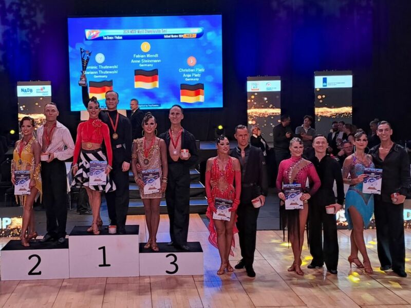 Nach 40 getanzten Tänzen stand dann der WM-Sieg fest und Fabian/Anne führten das erfolgreiche deutsche Quintett an: nicht nur alle WM-Medaillen sondern auch die Plätze 1 bis 5 gingen an die Vertreter von Tanzsport Deutschland.