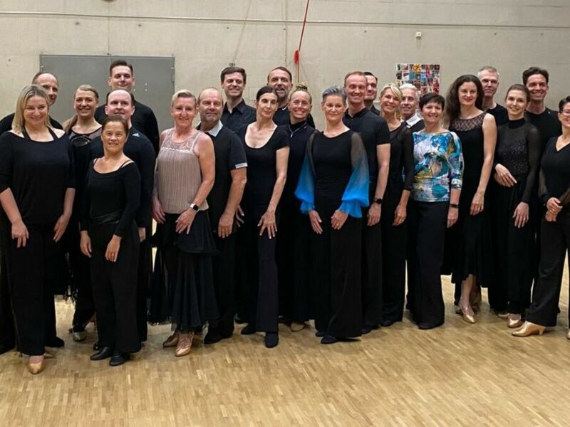 Bei generell guter Stimmung und nach dem obligatorischen Gruppenfoto ging es weiter mit dem Warm-up mit Eintanzen und Basicfolgen. Der eigentliche Sichtungsteil bestand aus einer Basic-Runde mit Langsamer Walzer, Tango, Slowfox und einer anschließend getanzten Endrunde. Bei der Sichtung unterstützte Landeslehrwart Axel Zechlin.