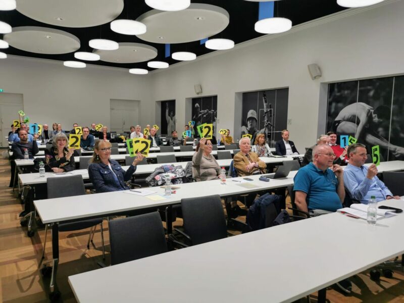 Noch vor der kurzen Pause wurden die Satzungsänderungsanträge beraten. Hier gab es einige Nach- und Rückfragen sowie erweiterte Änderungsanträge, doch schließlich fanden die vom Präsidium vorbereiteten Anträge allesamt die fast immer einstimmige Zustimmung und damit weit mehr als die erforderliche Zwei-Drittel-Mehrheit.