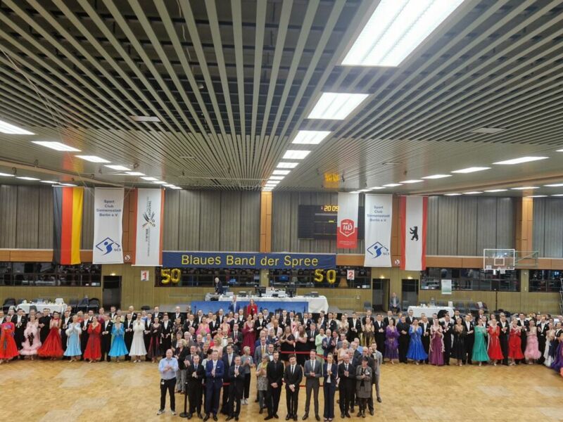 Zum 50. Male drehte sich das Berliner Tanzkarussell um das Blaue Band der Spree. Zur Jubiläumsauflage waren rund 1.500 Paare aus ganz Deutschland und dem benachbarten Ausland gemeldet und im Sport Centrum Siemensstadt am Start. Denn wieder mehr als 50 Turniere standen am Oster-Wochenende auf dem Programm der beiden Ausrichtervereine, OTK Schwarz-Weiß 1922 im Sport Club Siemensstadt und btc Grün-Gold der Turngemeinde in Berlin 1848, aus. Und wieder waren in sehr vielen Finals die Berliner Vereinsfarben vertreten: