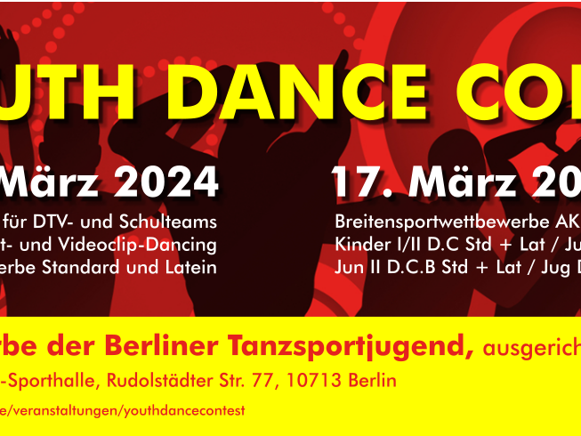 Der 16. Youth Dance Contest steht an diesem Wochenende (16. und 17. März) an. Zwei Tage lang wird in der Wilmersdorfer Gretel-Bergmann-Sporthalle (Rudolstädter Straße 77, 10713 Berlin) getanzt - ob Solo, im Duo, als Paar oder in der Mannschaft.
