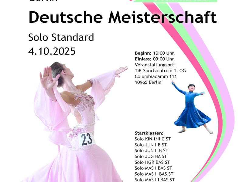Der btc Grün-Gold, die Tanzsportabteilung der Turngemeinde 1848 in Berlin, richtet die Deutschen Meisterschaften Solo Standard für die Startklassen der Kinder (C/B/A-Klasse), der Junioren I/II (B/A-Klasse), der Jugend (B/A-Klasse), der Hauptgruppe (B/A/S-Klasse) und der Masters I-V (B/A/S-Klasse) aus.