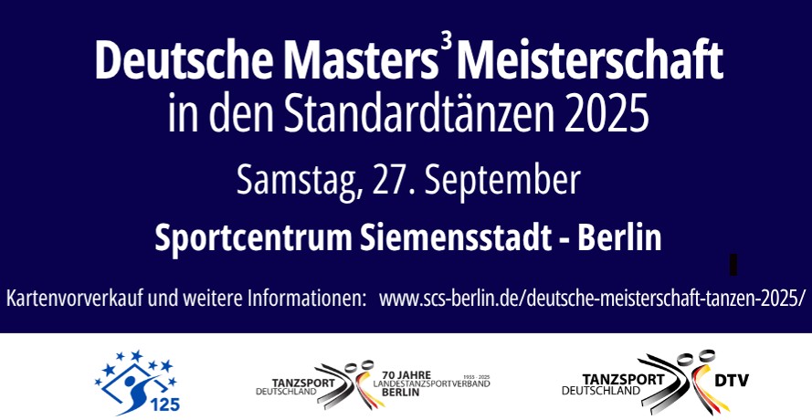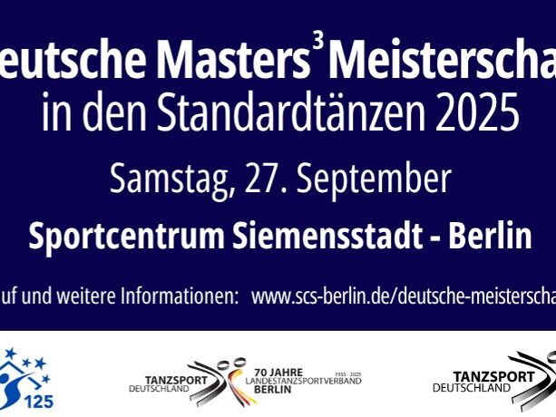 Zum Meldeschluss der Deutschen Masters³ Meisterschaft in den Standardtänzen 2025 stehen mehr als 110 Paare auf der Startliste. Am Samstag (27. September) wird somit die größte Deutsche Meisterschaft des Jahres im Sportcentrum Siemensstadt ausgetragen. Um 13 Uhr beginnt die Vorrunde und nach der ersten Zwischenrunde gegen 17 Uhr werden die 48 Paare des Achtelfinals ermittelt sein. Mit diesen Paaren werden dann die Finalrunden am Abend/ab 19 Uhr beginnen.