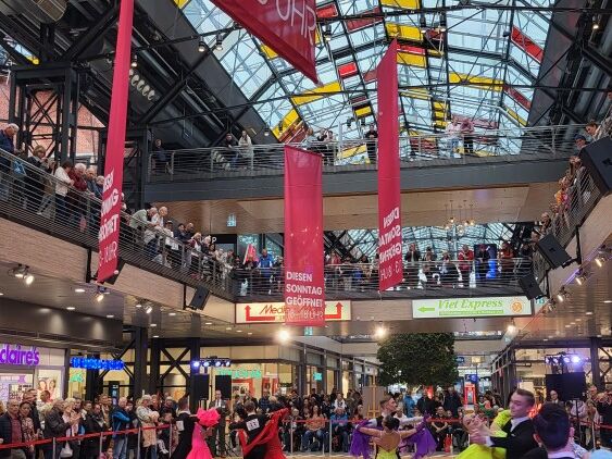 Auch in diesem Jahr shoppten Besucher der Hallen am Borsigturm am letzten Oktober-Wochenende (27. -29.10.) im Rhythmus von verschiedenster Tanzmusik. In Zusammenarbeit mit dem Center-Management veranstaltete das Tanzsportzentrum Blau Gold Berlin drei Tage lang Tanzturniere und Shows verschiedenster Art in dem Tegeler Einkaufscenter.
