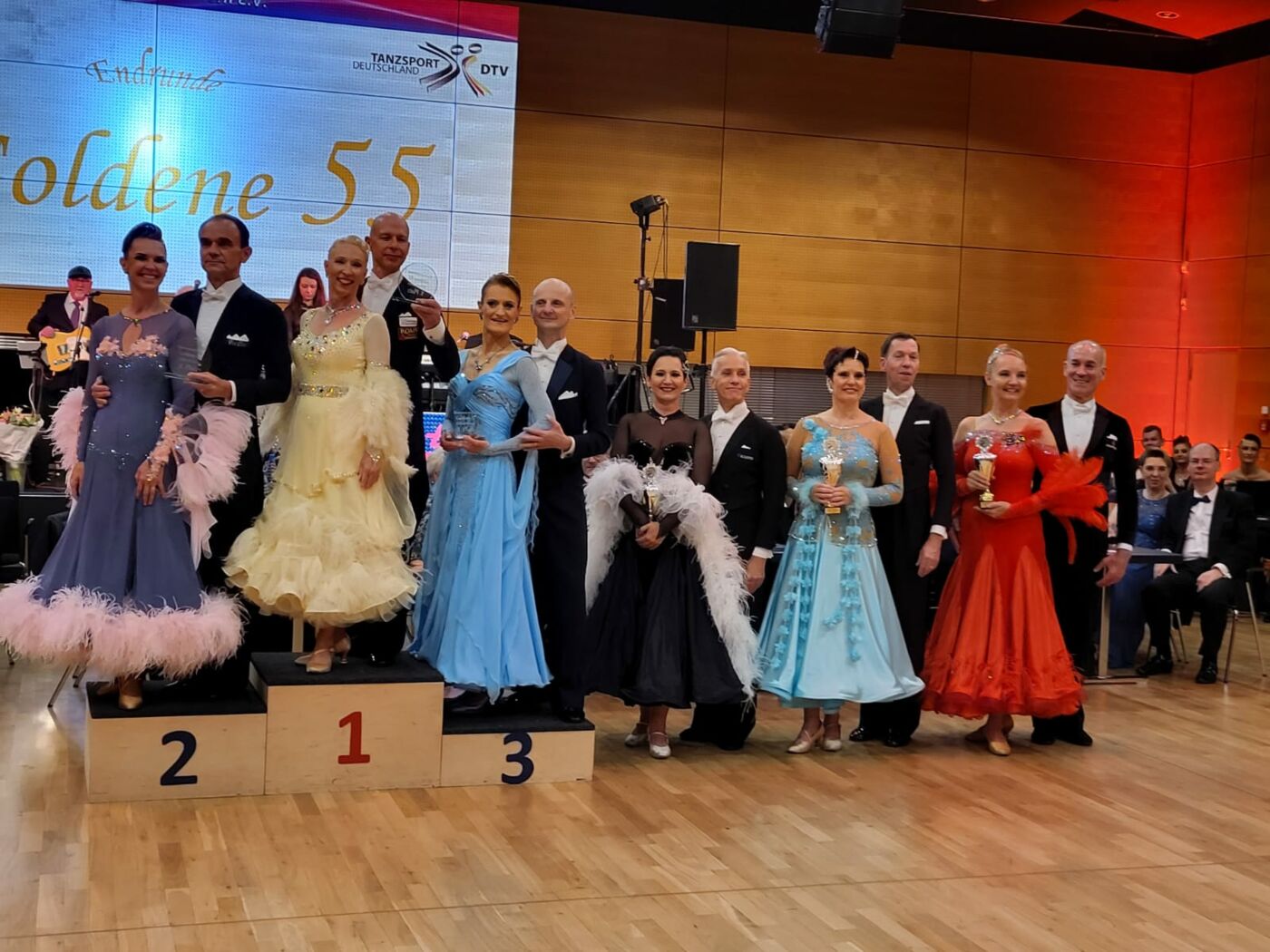 Beim Abschlussevent der Turnierserie "Goldene 55" konnten sich Stefan Jacob/Margit Stiebritz (btc Grün-Gold der Turngemeinde in Berlin) den vierten Platz ertanzen. Knapp 500 Zuschauer verfolgten am ersten Novemberwochenende den Serienabschluss der 28 Paare in der Gifhorner Stadthalle. Am Ende einer mit Shows gespickten Turnierveranstaltung standen die DM-Drittplatzierten der Masters III, Thomas und Susanne Schmidt, gleich zwei Mal ganz oben auf dem Treppchen. Sie ertanzten sich sowohl den Turnier- als auch den Gesamtsieg. Die Berliner konnten auch im Gesamtklassement 2023 den vierten Platz belegen und verfehlten einzig um "hauchdünne" vier Punkte den Sprung auf das Siegerpodest.
