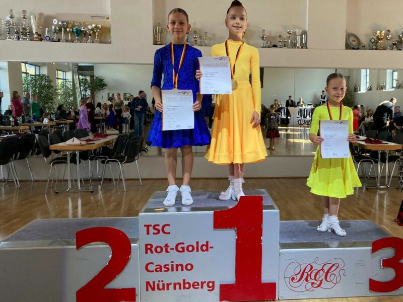 Am Sonntag (1. Oktober) fand in Fürth die 1. Deutsche Meisterschaft im Solo in den Standardtänzen statt. Hier konnten sich drei Berliner Starterinnen sensationell mit allen Edelmetallen in der Altersklasse Kinder I schmücken und trugen sich auch zeitlich als Erste in die Tanzsport-Geschichtsbücher ein.