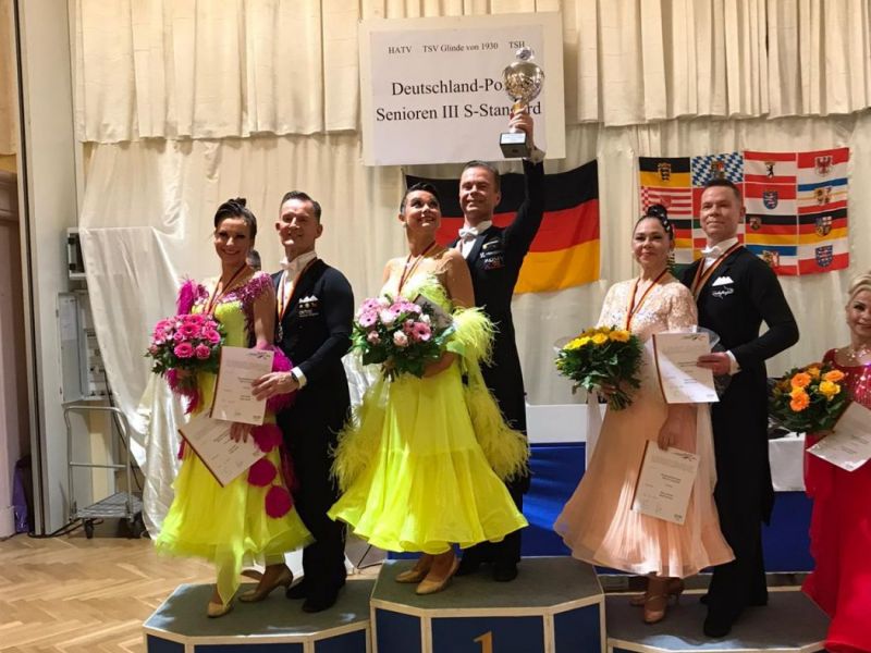 106 Paare der Senioren III S Standard waren in Glinde bei Hamburg am Start - und darunter nur drei Finalisten des Vorjahres. So wurde es spannend und am Ende war sogar Platz für vier Neulinge im Finale. Doch Gold ging erwartungsgemäß an ein Paar aus der Hauptstadt: "mit grandioser Leistung und allen Bestwertungen, sprich 35 Einsen, siegten Gert Faustmann/Alexandra Kley (Blau-Silber Berlin Tanzsportclub) klar und eindeutig" wie auf der DTV-Homepage zu lesen ist. Die beiden Berliner Tanzsportler setzten damit ihre Serie der DM-Goldmedaillen von den Senioren II bei den Senioren III fort. Peter und Sibylle Schmiel (Askania TSC Berlin) freuten sich als vorrangig 10-Tänze-Paar über den Gewinn der Bronzemedaille bei den Spezialisten und unetrstrichen damit ihre tänzerische Klasse.