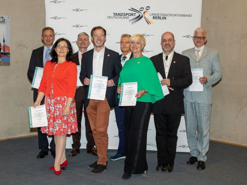 Es ist eine lange und schöne Tradition die erfolgreichen Tanzsportler*innen der letzten Zeit und Ehrenamtlichen in den Berliner Tanzsportvereinen auszuzeichnen. Eigentlich alle zwei Jahre im Herbst, doch der für November 2021 geplante Abend musste aufgrund der damaligen Umstände verschoben werde. Nun konnte die Veranstaltung am Montag (9. Mai) live und somit in Präsenz im Landesleistungszentrum Tanzen durchgeführt werden. Der Klaus-Koch-Saal bot mit Belüftung und ausreichend Abstandsmöglichkeiten den idealen Rahmen, die Ehrungen des Berliner Tanzsportjugend (BTSJ) und des Landestanzsportverband Berlin nach der Ehrungsordnung vorzunehmen. Und der zeitliche Bogen für die sportlichen Erfolge spannte sich von den Landesmeistertiteln Anfang 2020 - vor Corona - bis zum Ende des sportlich erfolgreichsten Jahres für die Berliner Tänzer*innen in 2021: mit sieben Deutsche Meistertitel in Standard, Latein, Kombination und Breaking (von den Kindern bis zu den Senioren), einem Weltmeistertitel, zwei Vize-Weltmeistern und einer WM-Bronzemedaille. Viele Spitzenpaare sind in ihren Leistungen so konstant, dass sie alle zwei Jahre zur Ehrungsveranstaltung eingeladen werden dürfen. Doch die jeweilige Ehrennadel wird stets nur einmal verliehen und im erfreulichen Wiederholungsfall dann durch eine Sonderehrung, diesmal besondere Medaillen, ersetzt.