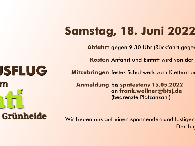 Nachdem pandemiebedingt in den letzten beiden Jahren kein gemeinsamer Ausflug stattfinden konnte, wird die Berliner Tanzsportjugend am 18. Juni 2022 einen Ausflug in den disati Kletterwald Grünheide starten.