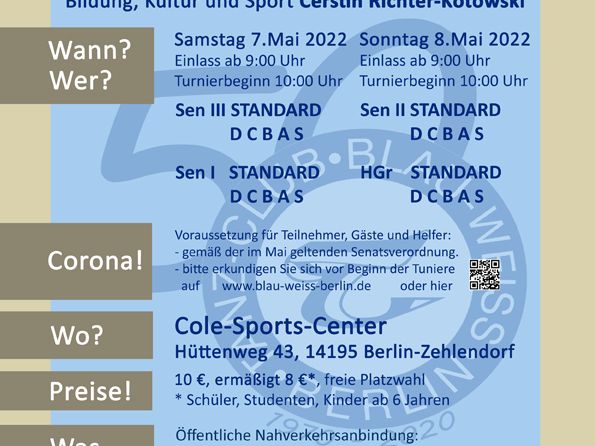 Sonniges frühlingshaftes Wetter anstatt winterlicher Temperaturen - lange mussten die Paare aus Berlin und Brandenburg auf diesen Tag warten, denn coronabedingt waren die eigentlich immer im Januar stattfindenden Meisterschaften auf Ende April verlegt worden. Die Hoffnung, "eine nahezu normale Durchführung" zu ermöglichen, hatte die veranstaltenden Verbände und Vereine dazu bewogen, die Turniere um drei Monate zu verschieben. Diese Hoffnung wurde nun erfüllt, sodass nicht nur Paare und Begleitpersonen zugelassen waren, sondern auch zahlreiche Zuschauer*innen den Weg in die Neue Sporthalle Schönow (bei Bernau) fanden.