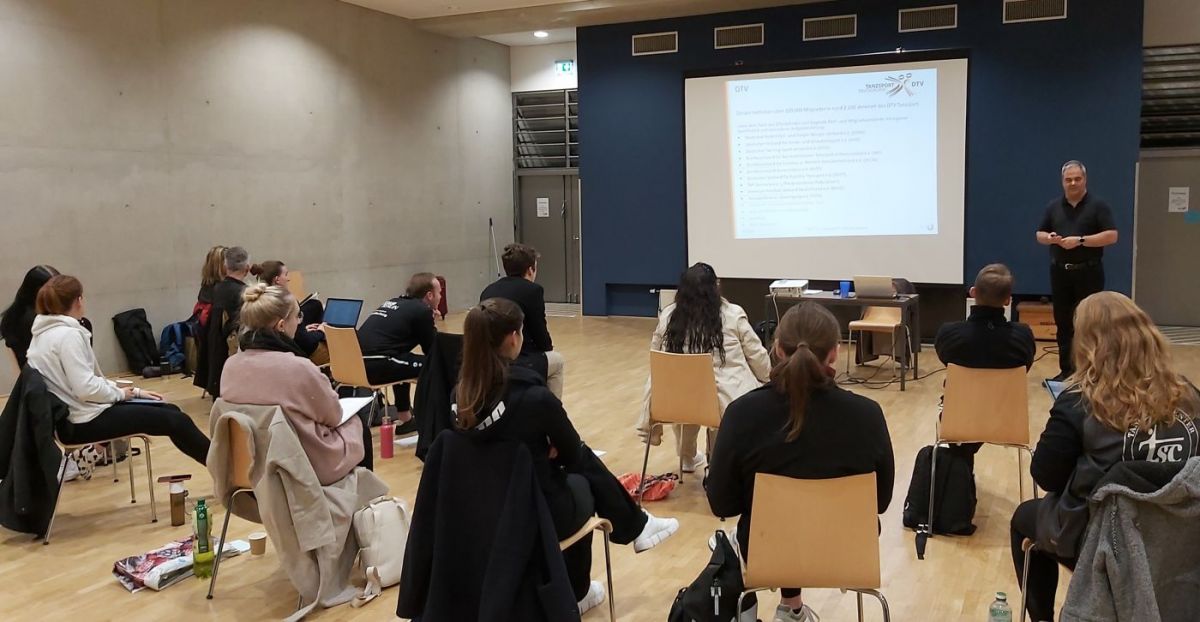 Die 14 Teilnehmenden des überfachlichen Ausbildungsmoduls der ostdeutschen Trainer C Breitensport-Neuausbildung haben am Sonntag ihre Prüfung bestanden. Am Ende des zweiten Ausbildungswochenendes galt es die Prüfungsbögen in den Lernbereichen 1 (Person und Gruppe), 2 (Bewegungs- und Sportpraxis), 3 (Verein und Verband) und 4 (Musik) erfolgreich auszufüllen. Zuvor hatten Nora Badura (Lernbereich 1, 2 und 4) sowie Thomas Wehling (Lernbereich 3) die (letzten) Lehreinheiten unterrichtet und alle Prüflinge auf den abschließenden Schritt vorbereitet. Zudem zeigten alle Teilnehmenden am Samstag eine kurze Lehrprobe, so dass dann am Sonntag nachmittag alle Prüfungsbescheinigungen mit "bestanden"ausgegeben werden konnten.
