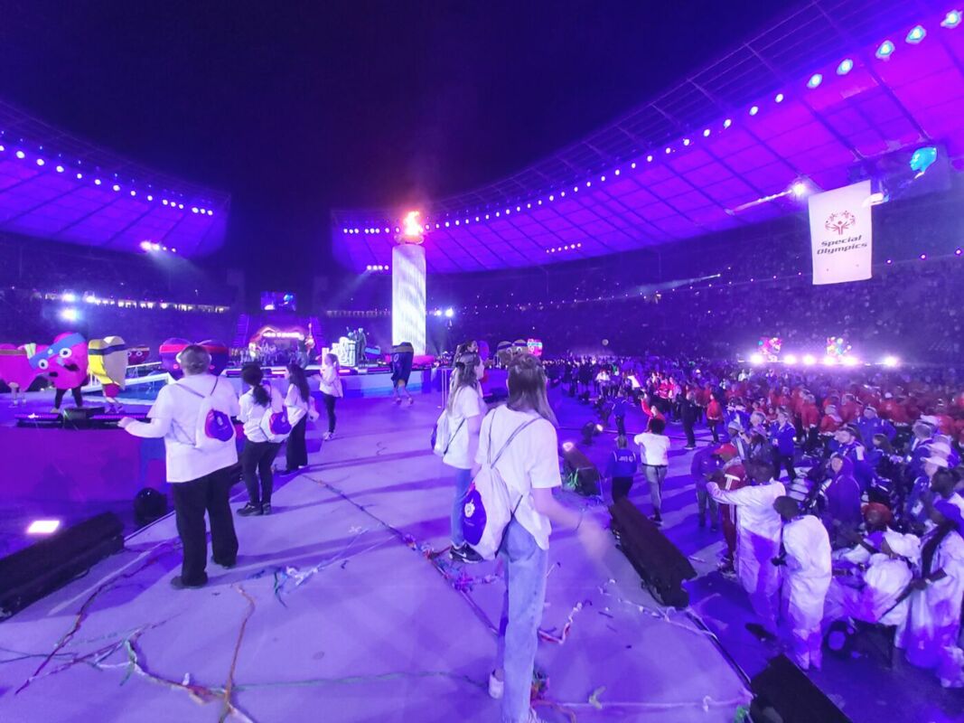 Nach dem Einmarsch aller Delegationen, dem Hissen der Special Olympics Fahne und einigen Ansprachen sowie den Eiden folgten die wohl bewegendsten Momente. Bundespräsident Frank-Walter Steinmeier erklärt genau um 23:08 Uhr die Special Olympics World Games Berlin 2023 für eröffnet, die deutsche Tennisspielerin Sophie Rensmann übernahm die in Olympia entzündete "Flamme der Hoffnung" und entzündete als letzte Fackelträgerin das Feuer - das sich dann in der Stadionmitte erhob - und dann wurde getanzt. Standen nicht schon viele Zuschauer, so riss es sie am Ende von den Plätzen.