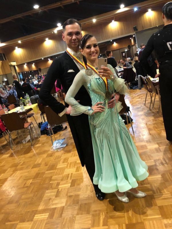 Auch Björn Cremer/Maria Privalova (Blau-Silber Berlin Tanzsportclub) stiegen auf das Treppchen: Im Deutschlandpokal der Hauptgruppe II Latein erreichten auch sie den dritten Platz. Für Björn war es bereits die zweite Bronzemedaille. Mit seiner damaligen Partnerin tanzte er sich schon 2017 auf das Podest.