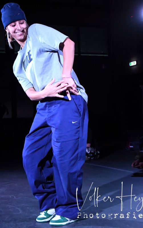 20 B-Girls waren am Start. Nach der Vorrunde (in der Maro (Maria Galina Junge) von Samuels Dance Berlin ausschied) ging es für 16 von ihnen in die nächste Runde. In den Battles der besten 16 müssen jeweils zwei Tänze getanzt werden, bevor die Wertungsrichter entscheiden, wer in die nächste Runde kommt - die Top 16 erreichte CJ (Clara Johanna Zander vom Rot-Gold Berlin). Im Semifinale trafen im ersten Battle Melina (Melina Laura Fernandez Sanchez) aus Nordrhein-Westfalen, die mit 13 Jahren jüngste Teilnehmerin im gesamten Turnier, und Tina The Turner (Tina Lee) aus Berlin aufeinander. Melina qualifizierte sich bei ihrem ersten Ranglistenturnier auf Anhieb für das Finale. Im zweiten Battle zum Finale standen sich Jilou aus Berlin und Pauline (Pauline Nettersheim) aus Düsseldorf gegenüber. Die beiden lieferten sich ein spannendes Battle, das aufgrund der Wertungen der Jury zu einem Tiebreak und einem dritten Tanz führte, den Jilou für sich entschied. Pauline vom Boston-Club Düsseldorf gewann die Entscheidung um Platz drei. Im abschließenden Finale des Tages ging der Sieg bei den B-Girls an Jilou vom Sportclub Siemensstadt Berlin (Foto).