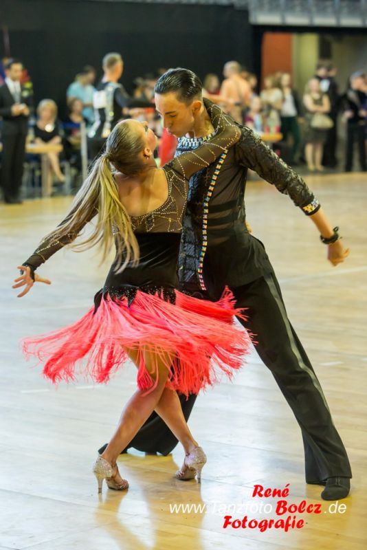 Der zweite Tag der danceComp begann mit zwei Silbermedaillen für Berlin in den offenen Turnieren in der Lateinsektion. Eric Müller/Vanessa Karge (Askania TSC) tanzten sich im Feld der 42 Paare der Hauptgruppe D Latein auf den zweiten Platz. Ebenso eine Silbermedaille, allerdings die für die Teilnahme am Lateinturnier der Hauptgruppe II A nehmen Jan Lüder/Kathleen Voigt (Blau-Silber Berlin TSC) mit nach Hause. Einige Stunden später durften gleich zwei Paare auf das Treppchen der Hauptgruppe A Latein steigen. Die noch in der Jugend startberechtigten Patrick Lewke/Angelina Ginsheimer (OTK Schwarz Weiß) tanzten sich im Feld der 73 Paare vor Ingo Madel/Rosina Witzsche (Blau-Silber Berlin TSC) auf den Silberrang. Parallel dazu tanzten sich Christoph Kluge/Julie Liu (Blau-Silber Berlin TSC) ebenfalls auf Platz zwei. Nachdem Berlin tagsüber die Silbermedaillen scheffelte, gab es dann am Abend doch noch zwei Goldmedaillen zu verzeichnen. Zunächst tanzten sich David Jonas Wedekind/Sakine Celik (Creative Club) in der Hauptgruppe B Latein auf das oberste Treppchen und am späten Abend taten es ihnen Gergely Darabos/Stefanie Werner (btc Grün-Gold der TiB 1848) nach und gewannen die Senioren I A Latein. Unsere beiden S-Paare der Hauptgruppe Latein, Tobias Wozniak/Maria Hirnich und Berkay Cihan/Jelena Kölble (beide Blau-Silber Berlin TSC) tanzten sich bei den Rising Stars in das mit 27 Paaren ausgetanzte Viertelfinale.
