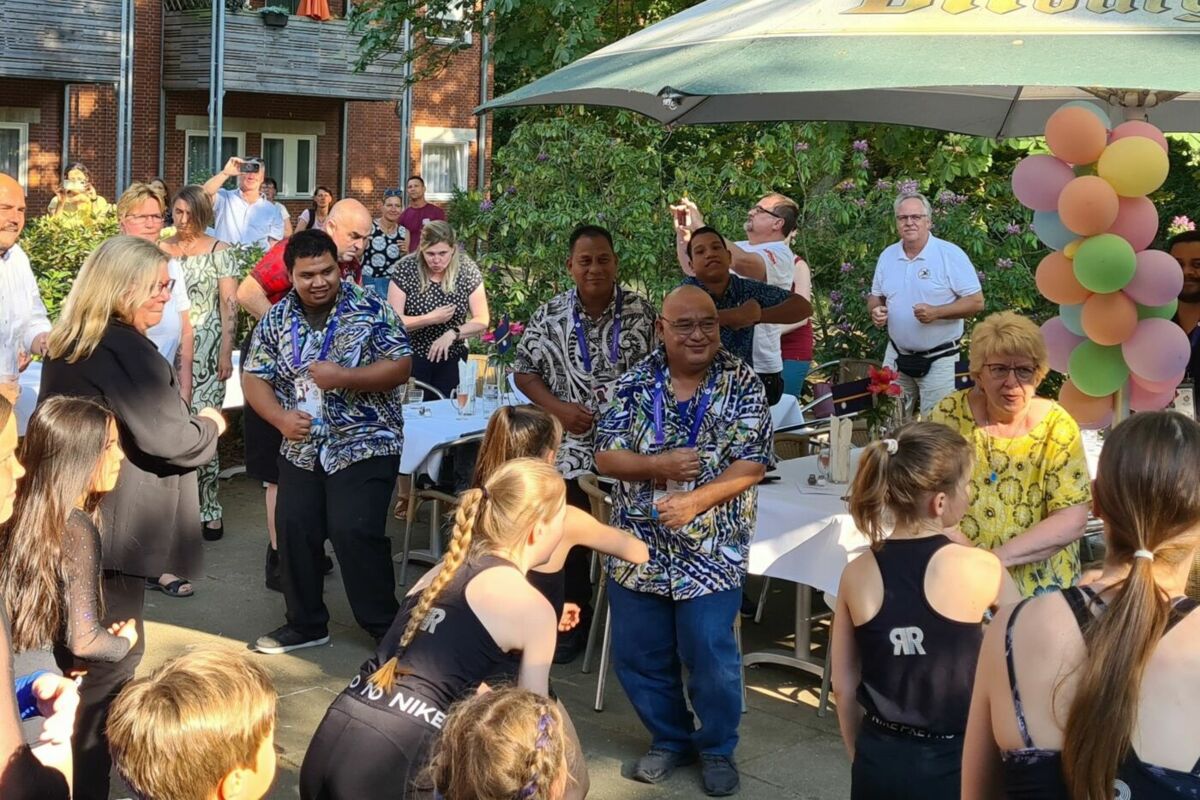 Auch mehrere Berliner Bezirke sind seit Montag Gastgeber für jeweils eine Delegation. So hat Spandau die kleine Delegation aus dem Pazifikstaat Nauru zu Gast und ein buntes Programm organisiert. Am Montagabend gab es es einen Willkommensempfang mit Bezirksbürgermeister Frank Bewig. Und der Höhepunkt und Abschluss von Reden und verschiedenen Vorführungen war der gemeinsam Tanz...des DTV-Tanz des Jahres 2023 zum Games Song der Special Olympics World Games.