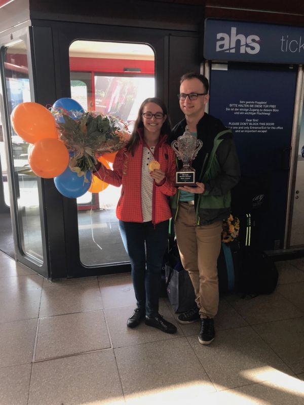 Pünktlich landeten die frisch gebackenen Weltmeister Fabian Wendt/Anne Steinmann (TC Spree Athen) in Berlin Tegel, wo sie von Sportwart Hendrik Heneke und Jugendwartin Eva Maria Sangmeister empfangen wurden. Während sie eine Stunde auf die Koffer warteten, konnten sie sich wieder an deutsche Wetterverhältnisse gewöhnen. Für den nächsten Termin ist das auch schnell nötig, denn am kommenden Sonntag (20.10.2018) findet in Elmshorn die Deutsche Meisterschaft der Senioren I Standard statt.