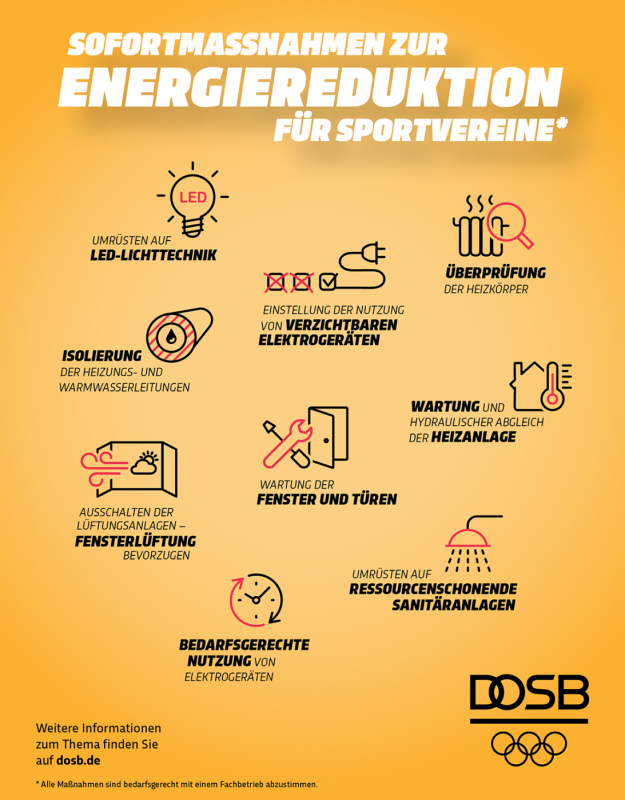 Die "Energiekrise" beschäftigt uns alle und natürlich auch die Sportvereine. Durch die Dachverbände wurden hier diverse Checklisten erstellt (z.B. vom DOSB). Vieles ist altbekannt, aber die erneute Sensibilisierung kann helfen, an verschiedenen Stellen Energie einzusparen. Denn, so das Motto in den Berliner Verbänden: wir sparen uns die "Energie " für den Sport!