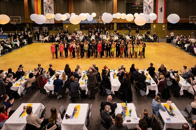 Bereits zum siebten Mal gewannen Marius-Andrei Balan/Khrystyna Moshenska (Pforzheim) den nationalen Titel der Hauptgruppe S. Insgesamt kamen 44 Paare in das Sport Centrum Siemensstadt, davon zwei aus Berlin. Die Halle war komplett in blau-gelb getaucht und auf den Tischen setzten blau-gelbe Tischläufer ein deutliches Signal: Solidarität. Die Deutsche Meisterschaft Latein 2022 stand ganz im Zeichen der Völkerverständigung. Marius und Khrystyna setzten mit ihrem Siegertanz zum ukrainischen Titel "Umarmungen" ein weiteres Zeichen der Solidarität. Die in blau-gelb gekleidete Khrystyna stammt aus der Ukraine. Bereits am Vormittag wurde mit einer Schweigeminute den Opfern gedacht.