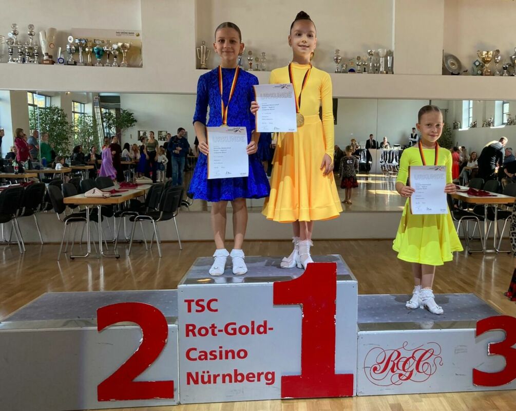 Am Sonntag (1. Oktober) fand in Fürth die 1. Deutsche Meisterschaft im Solo in den Standardtänzen statt. Hier konnten sich drei Berliner Starterinnen sensationell mit allen Edelmetallen in der Altersklasse Kinder I schmücken und trugen sich auch zeitlich als Erste in die Tanzsport-Geschichtsbücher ein.