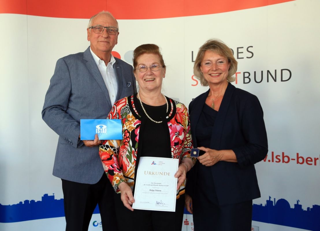 Im Rahmen dieser Gala wurde Helga Thierse vom Turniertanzkreis am Bügerpark mit der LSB-Ehrennadel in Gold ausgezeichnet. Die ehemalige Tänzerin aus dem Ballett der Deutschen Staatsoper erhielt diese Auszeichnung für das Engagement in dem von ihr vor 30 Jahren gegründeten Verein. Bis Heute unterrichtet Helga Thierse Paare und Gruppen aller Leistungs- und Altersgruppen - wobei ihr besonderer Fokus immer auf den Jüngsten lag und hoffentlich noch lange liegt.