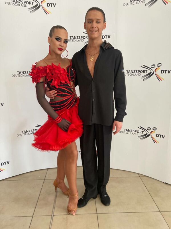 In der Jugend A Latein vertraten Danyil Samokhin/Evelina Bar (Ahorn Club - Foto) die Berliner Landesfarben unter 41 Paaren. Es war eine sehr knappe Entscheidung zum Finale - leider fehlten nur wenige Kreuze und unsere Berliner Nachwuchssternchen erreichen den 8. Platz im Semifinale dieses leistungsstarken Turniers.