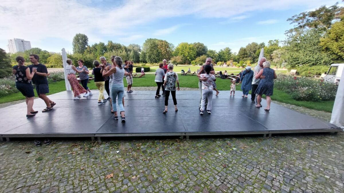 Auch zum letzten Event mit dem Thema/Tanz "ChaCha" kamen wieder sehr viele Interessierte und die Tanzfläche war erneut voll. Gabriele und Roland Maison leiteten das zweistündige und wieder kostenlose Abschluss-Angebot mit unserem Partner Grün Berlin für die Besucher*innen der Gärten.
