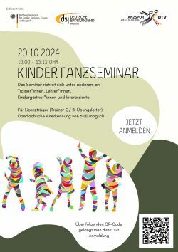 Das Kindertanzseminar ist hauptsächlich für (Breitensport-) trainer*innen, Kinder-gärtner*innen und Grundschullehrer*innen gedacht und hat sowohl einen Theorie- als auch einen Praxisteil. Der Teilnahme-Beitrag beträgt 20 Euro und ist an den DTV nach vorheriger Anmeldung zu überweisen. Das DTSJ-Anmeldeformular (pdf-Dokument) gibt es hier.