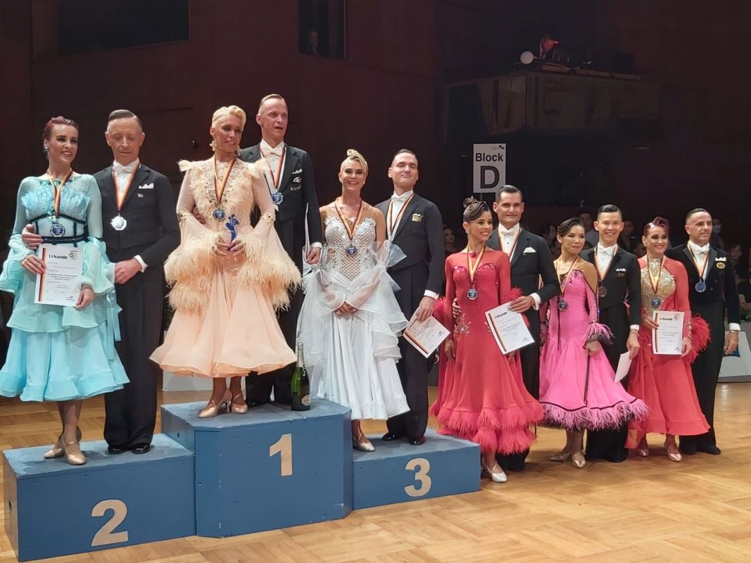 Dritter Tag, drittes Senioren-Standardfinale im Beethovensaal, dritte Berliner Finalteilnahme und dritte Medaille: diesmal Bronze für Fabian Lohauß/Simone Braunschweig bei den Senioren II in den Standardtänzen. Die Weltranglisten-Dritten vom Askania TSC zeigten eine überragende Leistung im 76 Paare starken Teilnehmerfeld. Im Finale der besten sechs Paare erreichten sie im Langsamen Walzer Platz 2 und Platz 3 in allen weiteren Tänzen...durften sich schließlich über die GOC-Bronze-Medaille freuen. Und Gordon Knittel/Isabelle Rührmund (btc Grün-Gold der Turngemeinde in Berlin 1848) erreichten als zweitbestes Berliner Paar Platz 28.
