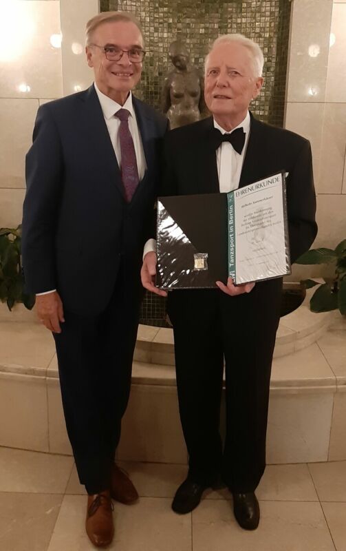 Der frühere SFB (Sender Freies Berlin)-Mitarbeiter wurde für seine ehrenamtlichen Verdienste bereits 2006 mit der LSB-Ehrenplakette sowie 2016 mit dem Bundesverdienstkreuz ausgezeichnet und erhielt im Jahr 2017 eine Ehrung für sein langjähriges Engagement für den Tanzsport aus den Händen des damaligen Regierenden Bürgermeisters Michael Müller.
